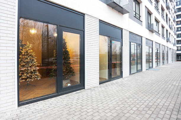 Installation or replacement of commercial shopfront glass panels.